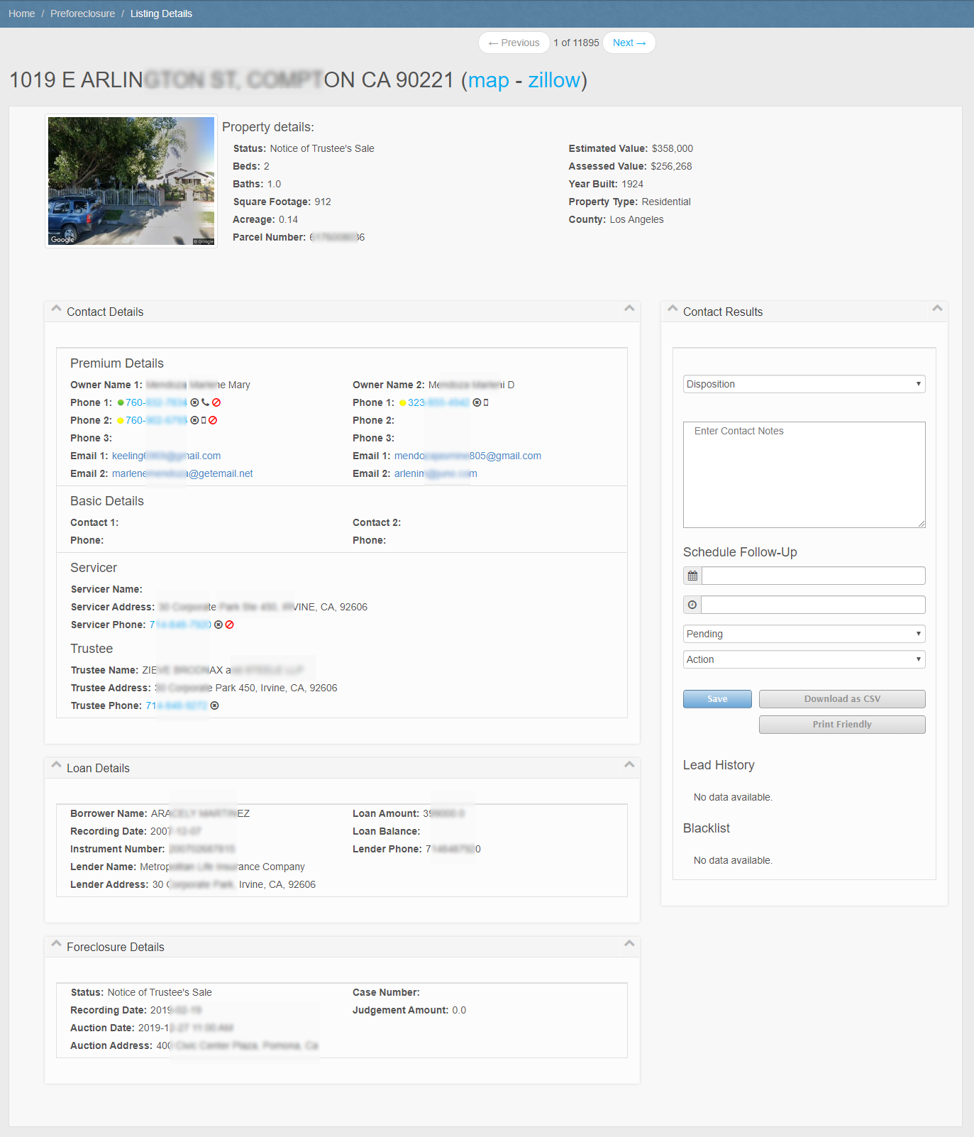 Unlike traditional directories based upon a stagnant data, the +plus Preforeclosure Lead Service utilizes real-time look-ups from multiple sources to ensure you are receiving the most accurate information available.